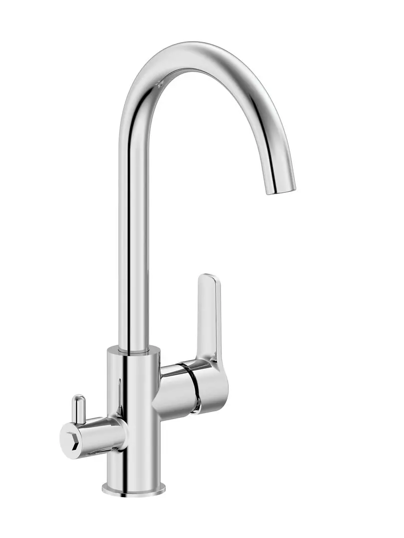 Harjun KORTE on laadukas STF-tyyppihyväksytty keittiöhana, jossa on astianpesukoneliitäntä ja korkea, kääntyvä juoksuputki. Hanan minimalistinen muotoilu sopii keittiöön kuin keittiöön. Joustavien liitäntäputkien ansiosta KORTE myös nopea ja helppo asentaa.