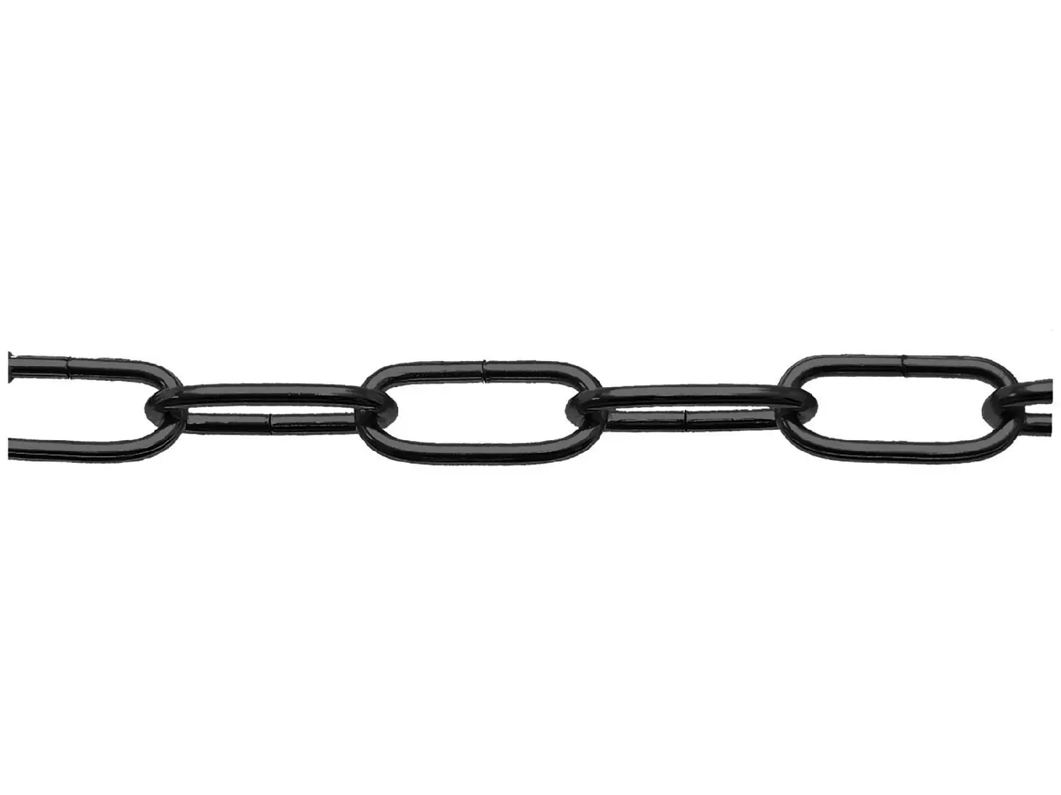 Teräksinen, musta koristeketju. Soveltuu mm. kukka-amppeleiden ja kynttiläkruunujen ripustamiseen tai DIY-projekteihin.Ainevahvuus 2 mmLenkin sisäpituus x lenkin sisäkorkeus 20 x 10 mmKetjun pituus 2 metriä