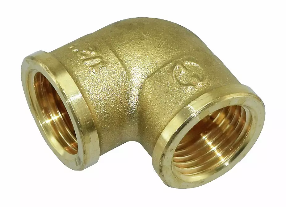 Messinkinen kulmaliitin sisäkierteillä. Koko 1/2"