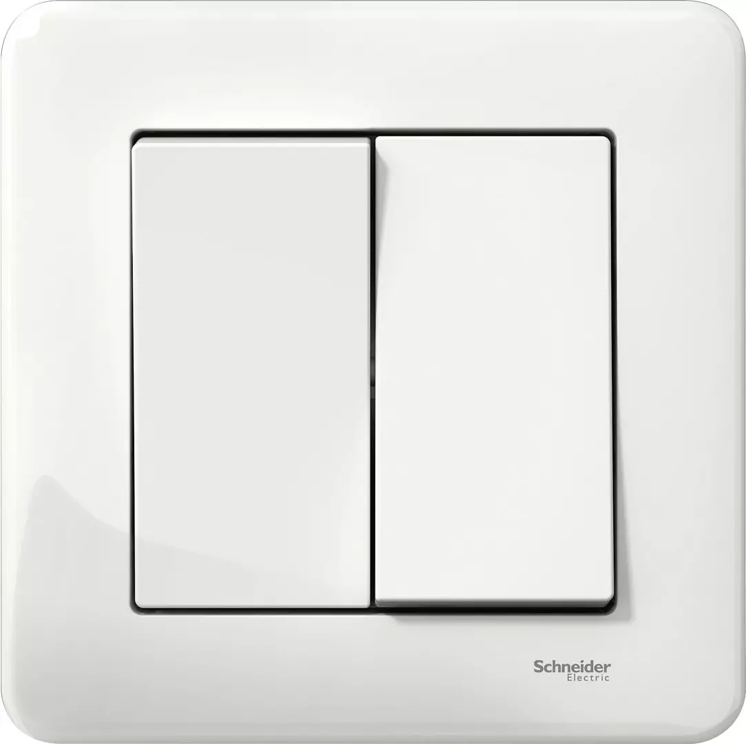 Uppo-asennettava kaksiosainen kytkin, jolla ohjataan kahta eri valopistettä tai kattokruunua samasta kytkimestä. Valkoinen. 16A, 250V
