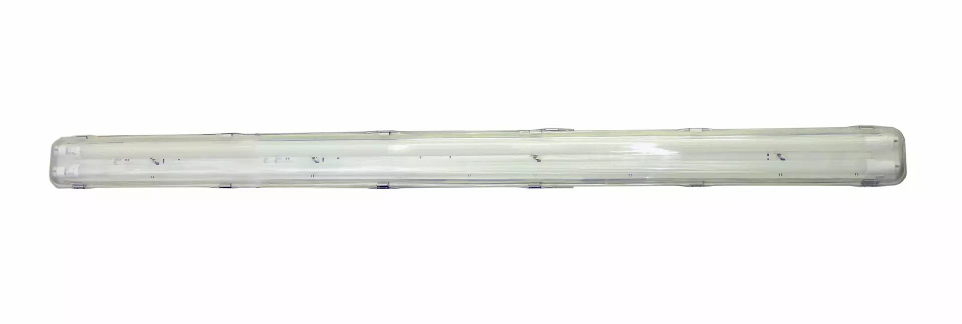 Teollisuusvalaisin 48 W vaihdettavilla 24 W LED-putkilla. Läpijohdotettu 2,5mm2 johdoilla. Valoteho 7200 lumenia, värilämpötila 4000 K. Kestävä PC runko ja kupu. Jännite 220-240 V. Kotelointiluokka IP65. Putkien käyttöikä noin 50 000 tuntia.