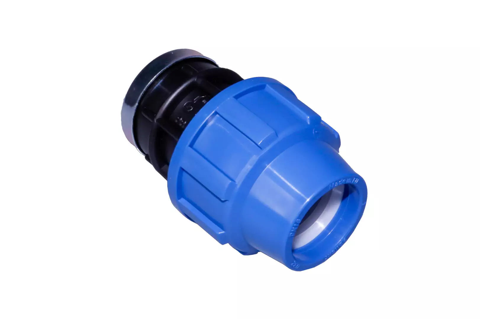 Muovinen liitin 25 mm muoviputken yhdistämiseen (1" sisäkierteet). Liitin sisältää puserrusrenkaan.