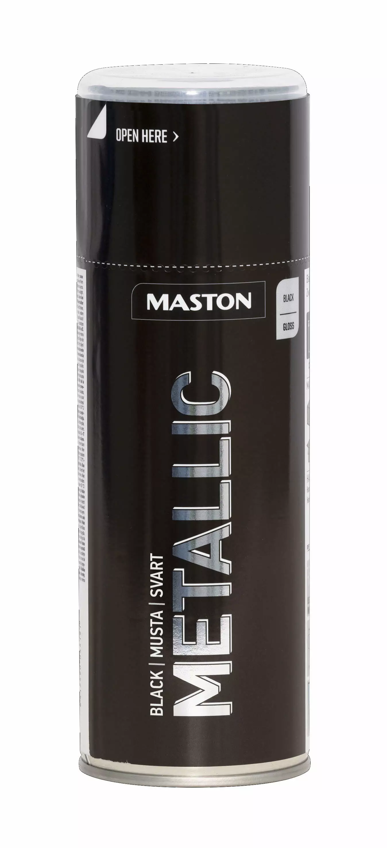 Maston Metallic on korkealaatuinen akryyli spraymaali, jossa metallipigmenttejä. Maali kuivuu nopeasti sekä pinnasta tulee tasainen ja kiiltävä. Sopii monille pinnoille kuten metalli-, puu-, kivi-, lasi- ja useimmille muovipinnoille.Ohjeet: Tarvittaessa maalaa metallipinnat pohjamaalilla ja muovipinnat muovipohjamaalilla. Pinnan on oltava puhdas, kuiva ja rasvaton, ei vahaa tai silikonia. Ravista vähintään 2-3 minuuttia ja ajoittain maalauksen aikana. Tee testimaalaus näkymättömälle alueelle. Aloita maalaus kohteen ulkopuolella n. 15 cm etäisyydeltä pinnasta ja maalaa hitaasti kohteen yli. Suihkuta ensin ohut kerros tartunnan parantamiseksi. Anna kuivua kerrosten välillä 5 minuuttia. Sen jälkeen 2-3 ohuita ristikerroksia ja anna kuivua. Toista tarvittaessa. Kosketuskuiva n. 15 min. Täysin kuiva 24 tuntia. Puhdista suutin kääntämällä purkki ylösalaisin ja suihkuta kunnes ulos tulee vain ponneainetta.