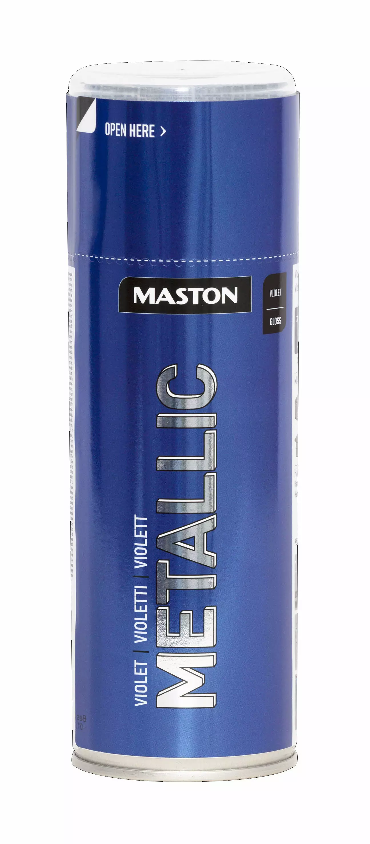Maston Metallic on korkealaatuinen akryyli spraymaali, jossa metallipigmenttejä. Maali kuivuu nopeasti sekä pinnasta tulee tasainen ja kiiltävä. Sopii monille pinnoille kuten metalli-, puu-, kivi-, lasi- ja useimmille muovipinnoille.Ohjeet: Tarvittaessa maalaa metallipinnat pohjamaalilla ja muovipinnat muovipohjamaalilla. Pinnan on oltava puhdas, kuiva ja rasvaton, ei vahaa tai silikonia. Ravista vähintään 2-3 minuuttia ja ajoittain maalauksen aikana. Tee testimaalaus näkymättömälle alueelle. Aloita maalaus kohteen ulkopuolella n. 15 cm etäisyydeltä pinnasta ja maalaa hitaasti kohteen yli. Suihkuta ensin ohut kerros tartunnan parantamiseksi. Anna kuivua kerrosten välillä 5 minuuttia. Sen jälkeen 2-3 ohuita ristikerroksia ja anna kuivua. Toista tarvittaessa. Kosketuskuiva n. 15 min. Täysin kuiva 24 tuntia. Puhdista suutin kääntämällä purkki ylösalaisin ja suihkuta kunnes ulos tulee vain ponneainetta.