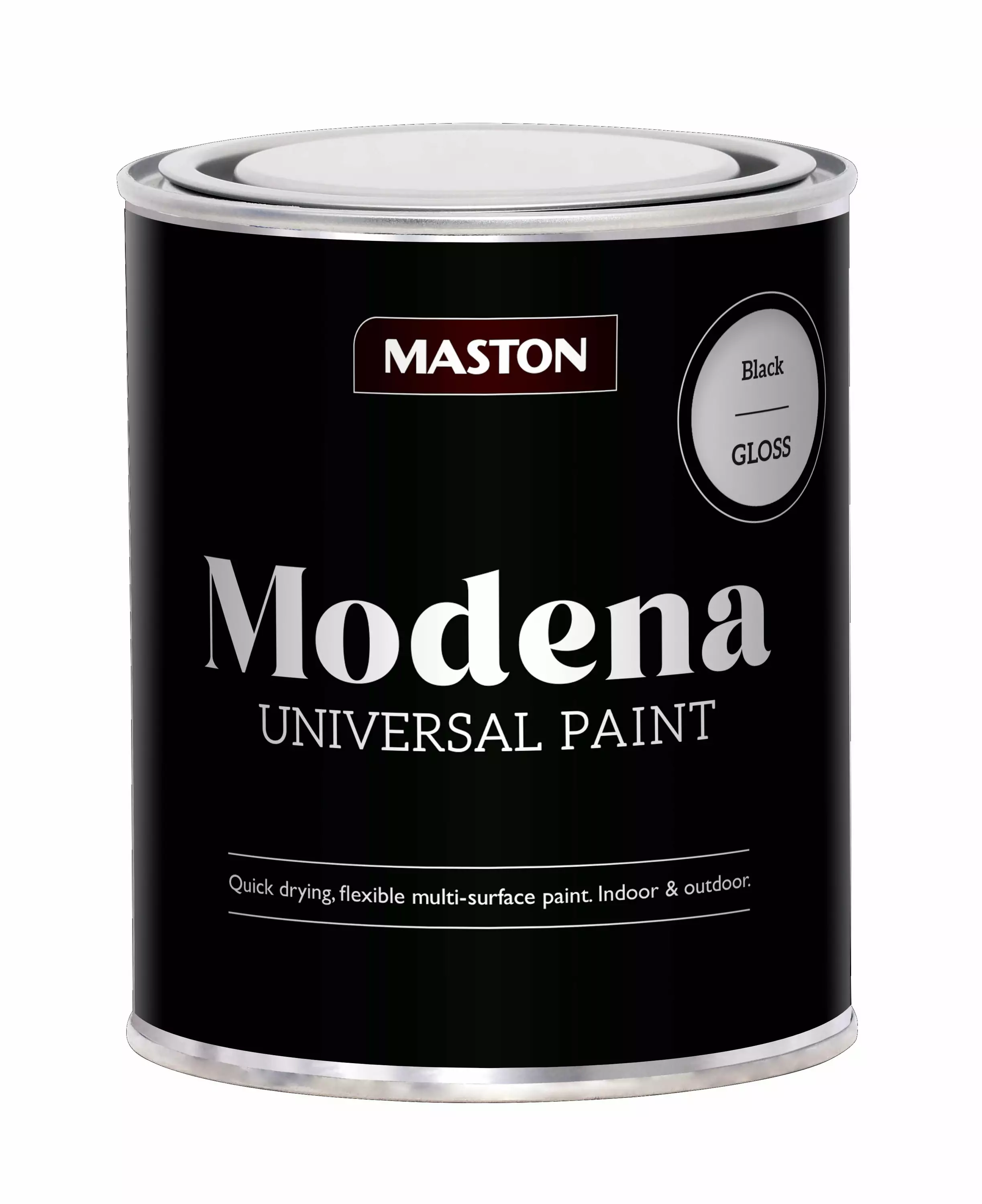 Maston Modena maali on erittäin nopeasti ilmakuivuva alkydimaali sisä- ja ulkokäyttöön. Soveltuu monille eri pinnoille kuten lasi, kivi, metalli- ja puupinnoille sekä useimmille muovipinnoille (käytä muovipohjamaalia)<br /><br />Käyttöohje: Puhdista käsiteltävä pinta huolellisesti rasvasta ja liasta. Näin saat lopullisesta pinnasta pitkäikäisen ja kestävän, epätasainen pinta on hiottava ennen työn aloitusta. Mikäli kyseessä on puupinta, hio aina puun syiden suuntaisesti. Metallipinnan hionnassa on syytä muistaa, ettei hio eri suuntiin. Käytä tarvittaessa kittiä. Poista mahdollinen hiontapöly huolellisesti. Sekoita maali hyvin ennen käyttöä! Kokeile soveltuvuus maalattaessa vanhan maalin päälle. Muovipinnoilla käytä ensin muovipohjamaalia.<br />Maston Modena voidaan levittää siveltimellä, telalla tai ruiskulla. <br />Ohennus ja työvälineiden pesu: Maston Xylen. <br />Kuivumisajat (+20°C): Kosketuskuiva 2h kuluessa. Mikäli tarvitaan useampia maalikerroksia on maalaus suoritettava 1 - 4 h kuluessa. Tai kun maali on läpikuiva eli 7pv:n jälkeen.<br />Riittoisuus: 10m²/l<br />Kiiltoisuus: Kiiltävä