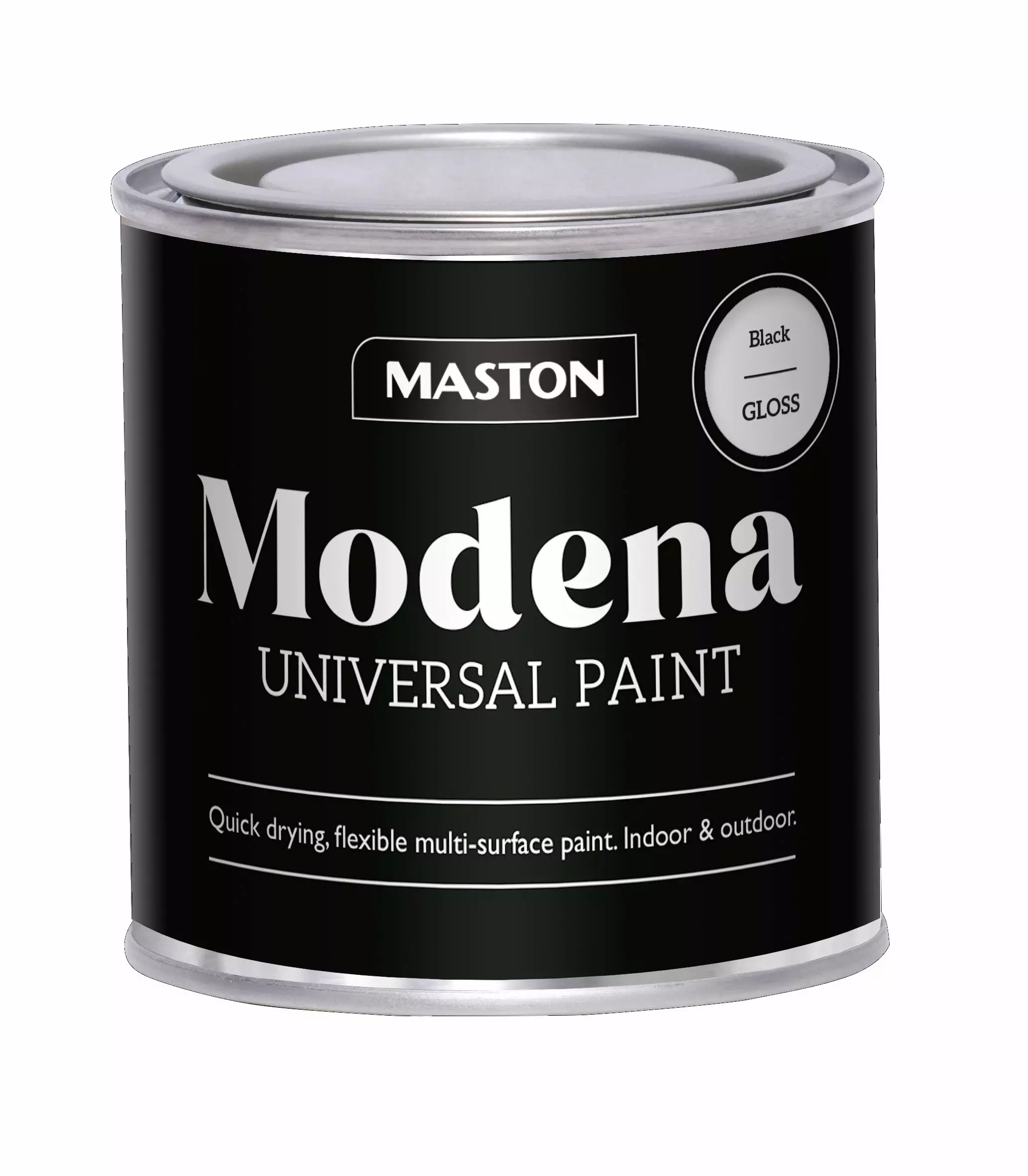 Maston Modena maali on erittäin nopeasti ilmakuivuva alkydimaali sisä- ja ulkokäyttöön. Soveltuu monille eri pinnoille kuten lasi, kivi, metalli- ja puupinnoille sekä useimmille muovipinnoille (käytä muovipohjamaalia)