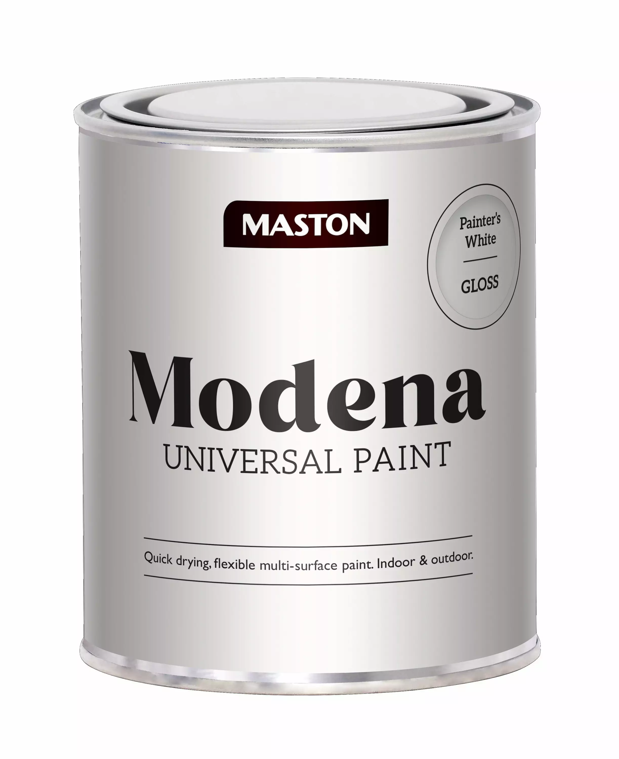 Maston Modena maali on erittäin nopeasti ilmakuivuva alkydimaali sisä- ja ulkokäyttöön. Soveltuu monille eri pinnoille kuten lasi, kivi, metalli- ja puupinnoille sekä useimmille muovipinnoille (käytä muovipohjamaalia)