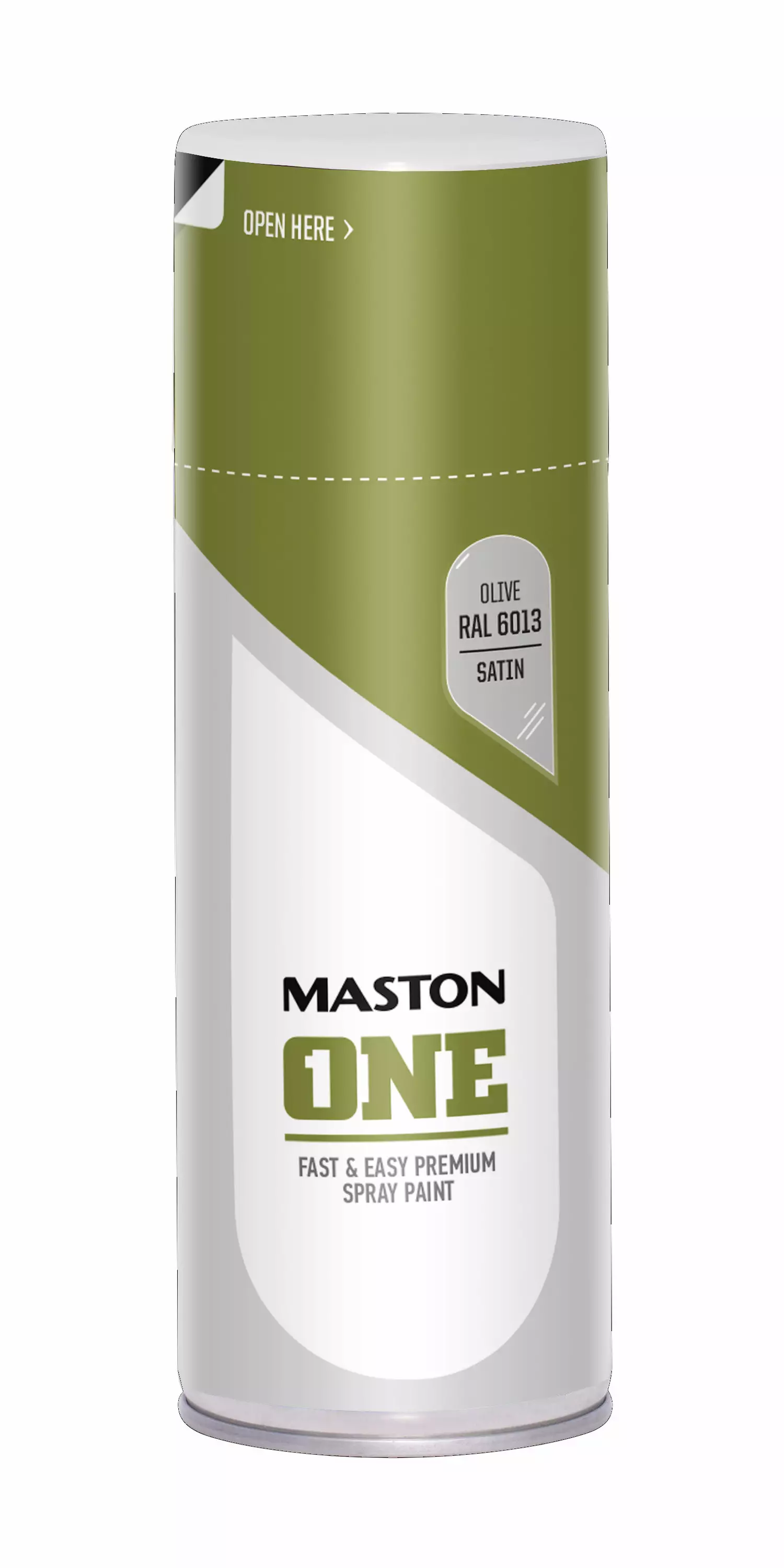Maston One® spraymaali – tekee maalauksesta helppoa ja nopeaa. Maston One® akryylimaali soveltuu käytännössä kaikille pinnoille, sisälle ja ulos. Maston One® -maalisarjassa kaikki mitä tarvitset, pohjamaalit, pintamaalit jos lakat kaikissa kiiltoisuuksissa sekä useassa eri värivaihtoedossa. Maalilla on erinomainen tarttuvuus. Maston One® ainutlaatuisen teknologian ansiosta suihkutusetäisyys on vain 15cm, tämä tarkoittaa tarkempaa maalauskokemusta, vähemmän maalipölyä eikä maalin valumia. Maston One® tuotteessa on helppokäyttöinen viuhkasuutin, jota on vaivatonta käyttää. Viuhkasuuttimen ansiosta saat maalattua valmista pintaa nopeasti, puhumattakaan sensaatiomaisen nopeasta kuivumisajasta – vain 15 minuuttia kosketuskuivaksi! (Pohjamaali hiottavissa 30-60min kuluttua) Suosittelemme ensin pohjamaalia tai muovipinnalle muovipohjamaalia. Riittoisuus: 2m2 (400ml), 0,75m2 (150ml) Kuivumisjat: 15 min kosketuskuiva, kuiva 24h.