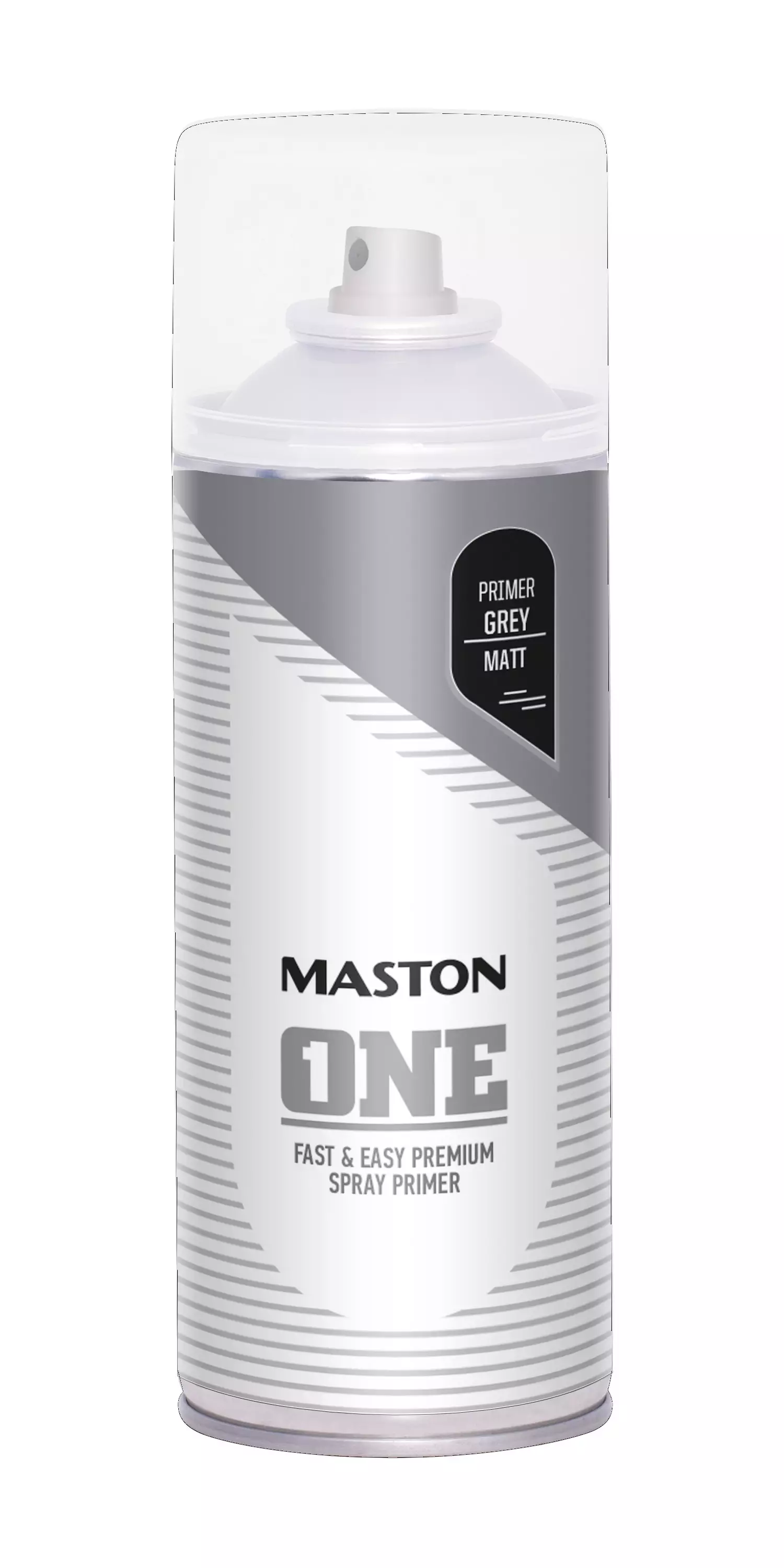 Maston One® spraypohjamaali – tekee maalauksesta helppoa ja nopeaa. Maston One® akryylipohjamaali soveltuu käytännössä kaikille pinnoille, sisälle ja ulos. Maston One® -maalisarjassa kaikki mitä tarvitset, pohjamaalit, pintamaalit jos lakat kaikissa kiiltoisuuksissa sekä useassa eri värivaihtoedossa. Maalilla on erinomainen tarttuvuus. Maston One® ainutlaatuisen teknologian ansiosta suihkutusetäisyys on vain 15cm, tämä tarkoittaa tarkempaa maalauskokemusta, vähemmän maalipölyä eikä maalin valumia. Maston One® tuotteessa on helppokäyttöinen viuhkasuutin, jota on vaivatonta käyttää. Viuhkasuuttimen ansiosta saat maalattua valmista pintaa nopeasti, puhumattakaan sensaatiomaisen nopeasta kuivumisajasta – vain 15 minuuttia kosketuskuivaksi! (Pohjamaali hiottavissa 30-60min kuluttua) Suosittelemme ensin pohjamaalia tai muovipinnalle muovipohjamaalia. Riittoisuus: 2m2 (400ml), 0,75m2 (150ml) Kuivumisjat: 15 min kosketuskuiva, kuiva 24h.