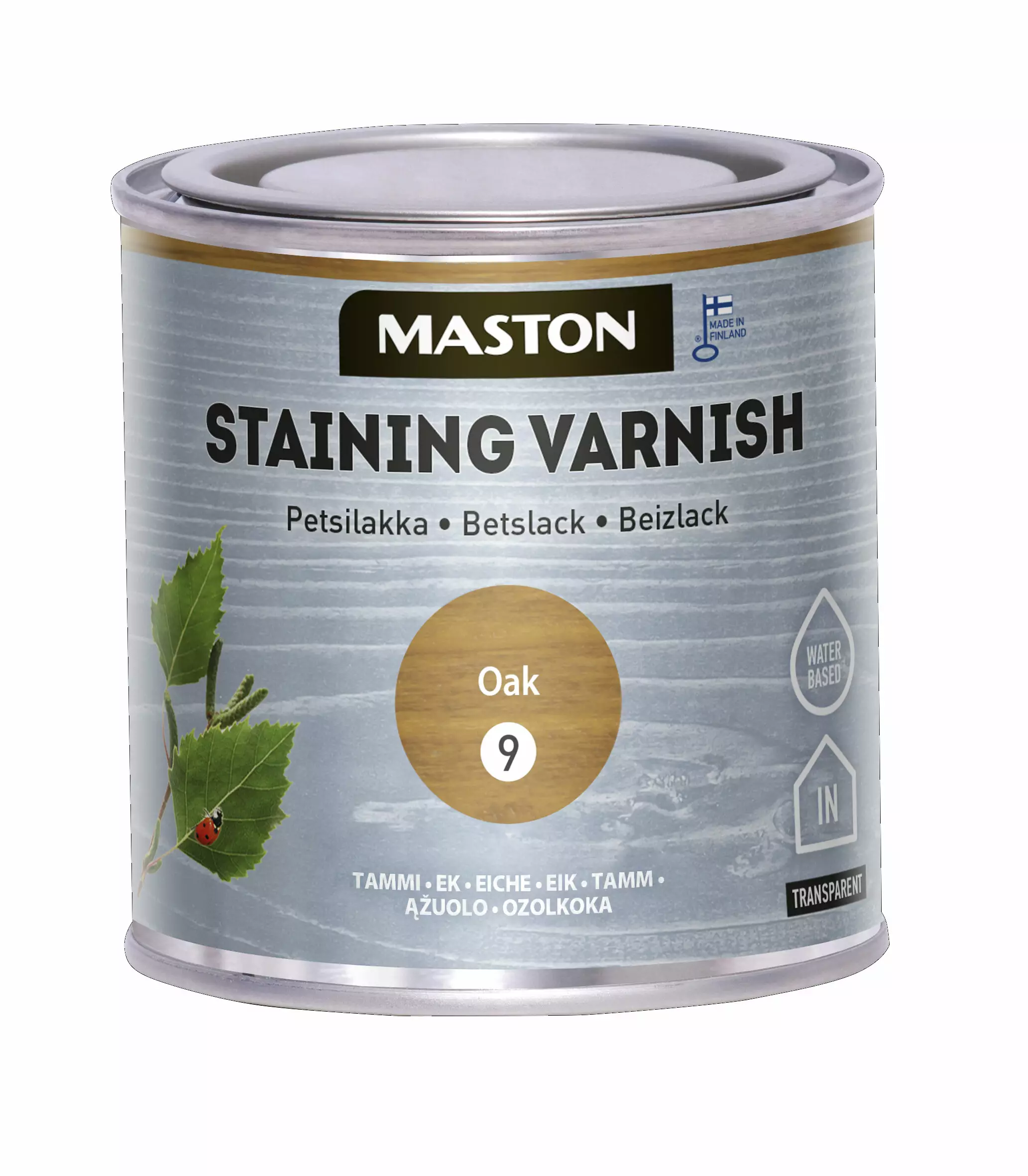 Maston Vesiohenteinen Petsilakka käsittelemättömien ja aiemmin käsiteltyjen puupintojen käsittelyyn ja uusimiseen. Läpikuultava, valonkestävä pinta. VAIN SISÄKÄYTTÖÖN. Geelimäinen. Näin onnistut! Esikäsittely: Hio pinta hiomapaperilla ja puhdista pinta hiontapölystä, öljystä, rasvasta ja muista epäpuhtauksista.Työskentely: Sekoita lakka huolellisesti ennen käyttöä. Sivele ohuesti puun syiden suuntaisesti. Käsittelemättömät, sekä tarvittaessa aikaisemmin lakatut pinnat käsitellään 2 kertaa. Ensimmäisen käsittelyn jälkeen anna pinnan kuivua läpikuivaksi ja suorita välihionta hiontapaperilla nro 240. Poista hiontapöly ja suorita uusintakäsittely.Alin työskentelylämpötila: +8°C. Ohennus ja työvälineiden pesu: vesi (ohennetaan tarvittaessa n. 5 %)Kuivumisajat: (+20°C) pölykuiva n. 20 min, kosketuskuiva n. 2 h, läpikuiva n. 24 h. Riittoisuus: n. 12 m2/l. Suojeltava jäätymiseltä.