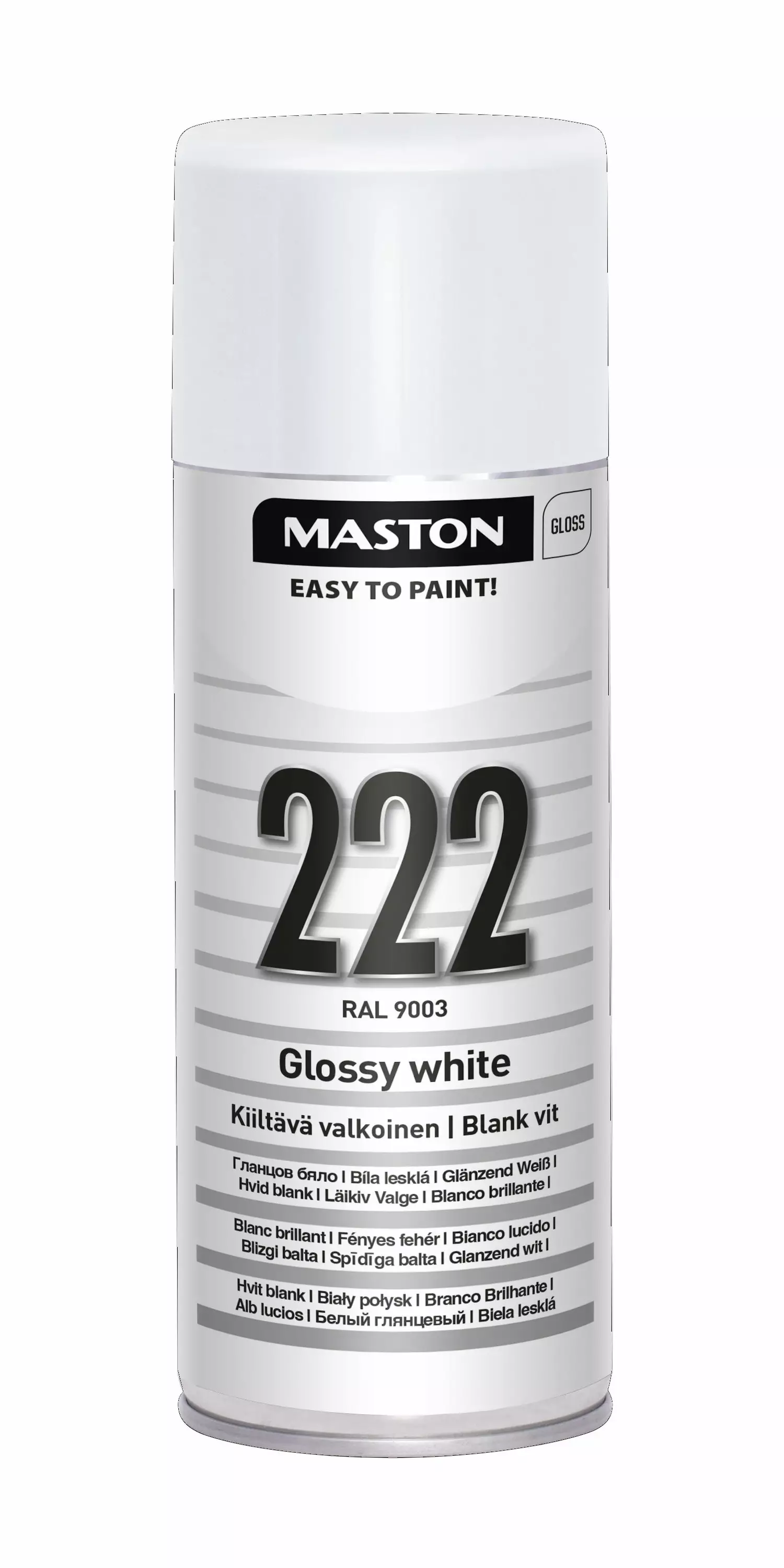 Maston 100-sarjan spramaalit ja -lakat sopivat niin harrastajille kuin ammattilaisillekin. Helppokäyttöisillä spraymaaleilla luot tasaisia pintoja helposti ja nopeasti. 100-sarja - Yleiskäyttöinen alkydipohjainen maali puulle, metallille, kovalle muoville, kivelle, betonille, lasille, vinyylille ja monille muille materiaaleille. Suosittelemme pohjamaalausta ja lakkausta saman sarjan tuotteilla. Ainutlaatuinen leveä ja tasainen suihkukuvio. Uudelleenmaalaus: aina 5 minuuttia kerrosten välissä. Oranssi, keltainen, vihreä ja valkoinen väri tarvitsee valkoisen tai harmaan pohjamaalin. Kosketuskuiva 20min, kuiva 24h, lopullinen kovuus 7 päivän kuluttua.