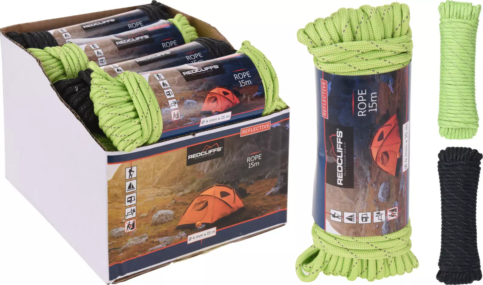 Kevyt ja käytännöllinen heijastava köysi, joka parantaa näkyvyyttä hämärässä ja pimeässä. 4 mm paksuus tekee köydestä helpon käsitellä ja monikäyttöisen esimerkiksi retkeilyyn, telttailuun, pihan merkintään, varusteiden kiinnitykseen tai turvallisuuskäyttöön.