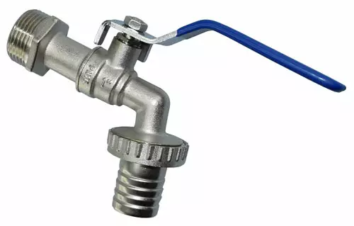 Niklattu pallolaskuhana kastelukäyttöön. Letkuliitin. Koko 1"