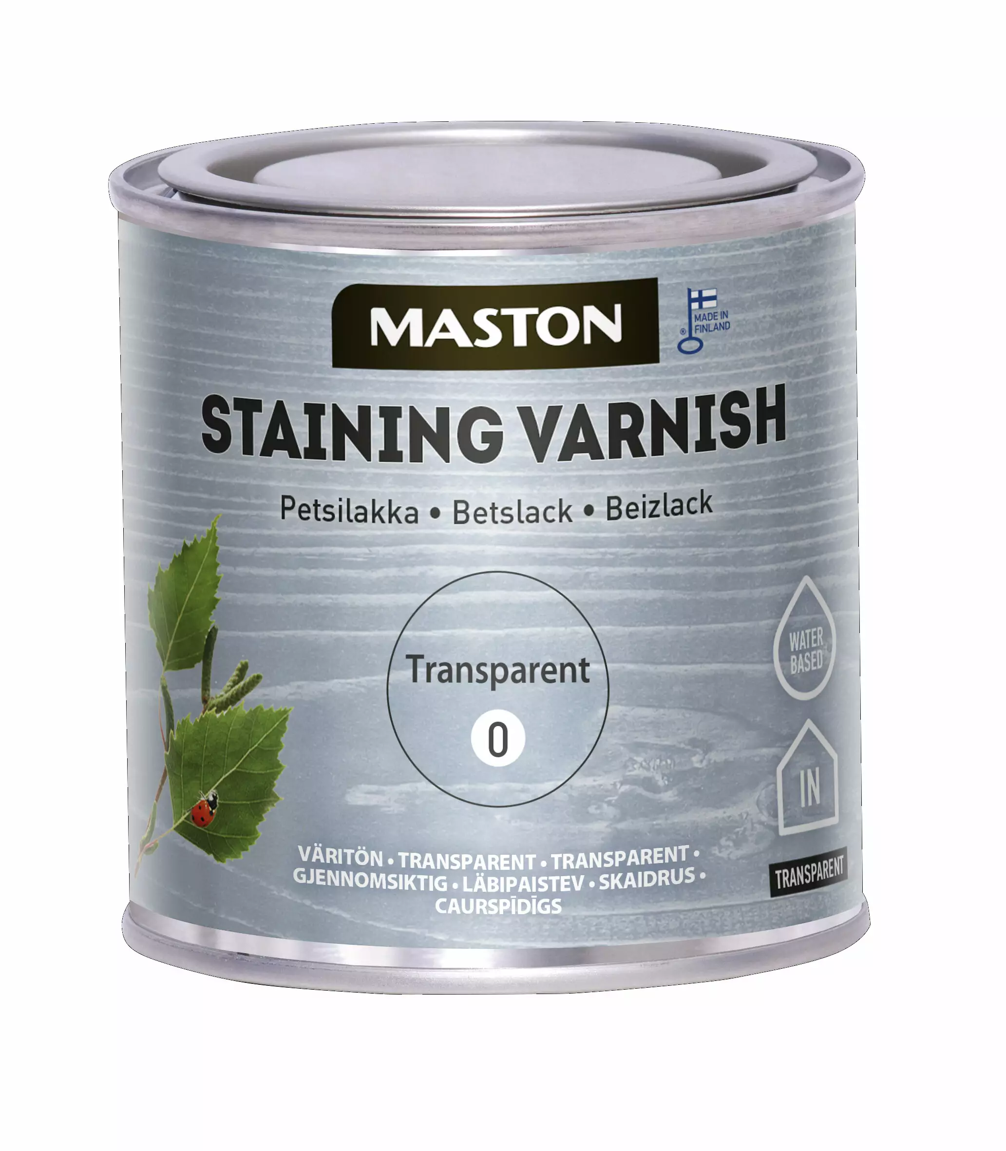 Maston Vesiohenteinen Petsilakka käsittelemättömien ja aiemmin käsiteltyjen puupintojen käsittelyyn ja uusimiseen. Läpikuultava, valonkestävä pinta. VAIN SISÄKÄYTTÖÖN. Geelimäinen. Näin onnistut! Esikäsittely: Hio pinta hiomapaperilla ja puhdista pinta hiontapölystä, öljystä, rasvasta ja muista epäpuhtauksista.Työskentely: Sekoita lakka huolellisesti ennen käyttöä. Sivele ohuesti puun syiden suuntaisesti. Käsittelemättömät, sekä tarvittaessa aikaisemmin lakatut pinnat käsitellään 2 kertaa. Ensimmäisen käsittelyn jälkeen anna pinnan kuivua läpikuivaksi ja suorita välihionta hiontapaperilla nro 240. Poista hiontapöly ja suorita uusintakäsittely.Alin työskentelylämpötila: +8°C. Ohennus ja työvälineiden pesu: vesi (ohennetaan tarvittaessa n. 5 %)Kuivumisajat: (+20°C) pölykuiva n. 20 min, kosketuskuiva n. 2 h, läpikuiva n. 24 h. Riittoisuus: n. 12 m2/l. Suojeltava jäätymiseltä.