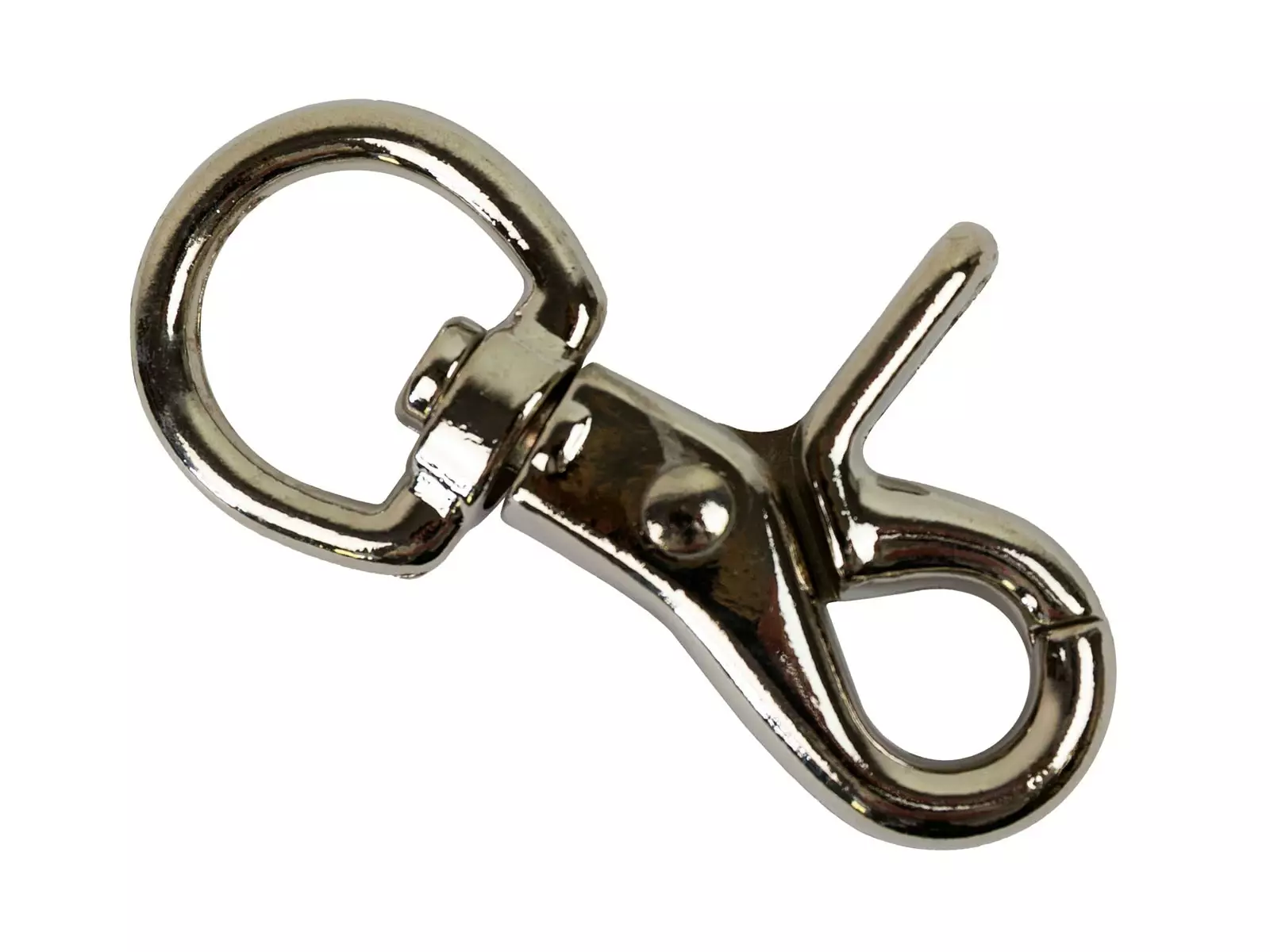Saksimallinen jousihaka. Teräs / niklattu.Jousihaka soveltuu köysien, ketjujen, vaijerien, hihnojen tai muiden välineiden nopeaa kiinnittämistä ja irrottamista varten.