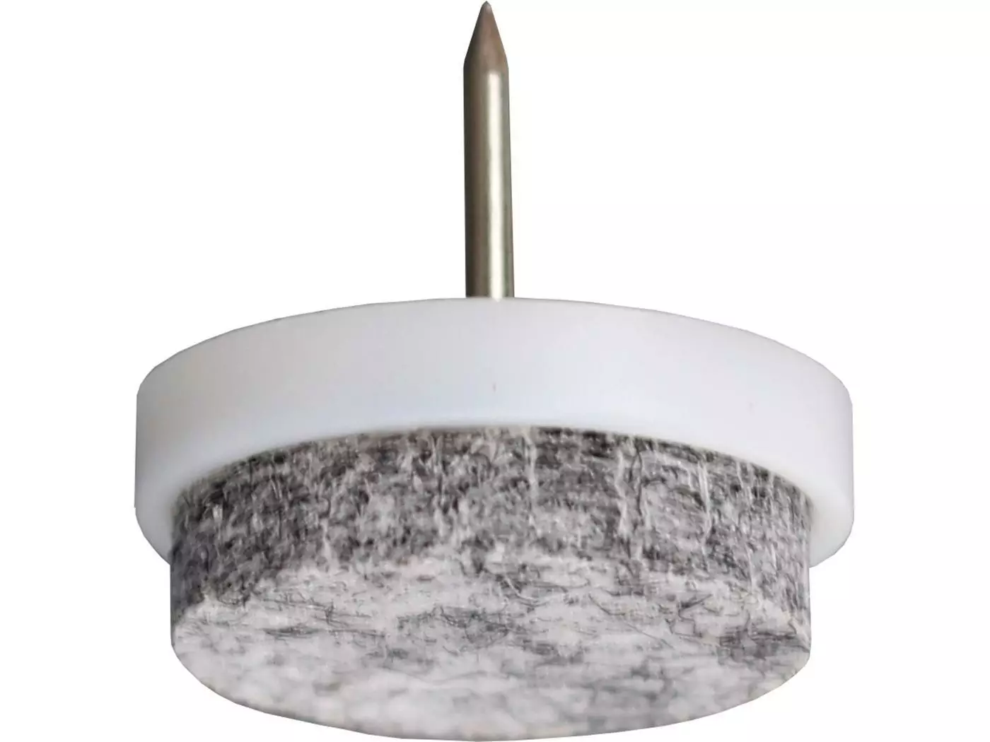 Liukunasta huovalla 24 mm. Suojaa lattiaa naarmuuntumiselta ja vähentää kalusteista syntyvää ääntä. Naulan avulla nasta on helppo kiinnittää esimerkiksi tuolin jalkaan.Muovi / HuopaNaulakiinnitysHuovan paksuus 3 mm