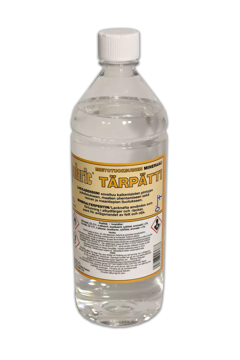 Mietotuoksuinen mineraalitärpätti 1 L Öljymaalien ja lakkojen ohentamiseen. soveltuu erinomaisesti esim. sisätiloissa tapahtuvaan maalaukseen hajuttomuutensa ansiosta.