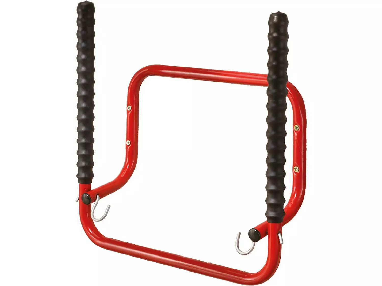 Kätevä, ylös taitettava seinäteline polkupyörille.Seinään kiinnitettävä teline vapauttaa lattiatilaa varastosta, kun polkupyörät voidaan nostaa ylös telineeseen. Tyhjänä telineen kannattimet voidaan kääntää seinää vasten, jolloin se vie vähemmän tilaa. Helppokäyttöinen ja kestävä taittomallinen pyöräteline on punaiseksi maalattua terästä. Kannatimissa on pinnoite, joka suojaa pyöriä kolhuiilta ja estää niitä liukumasta ja liikkumasta paikoiltaan.Teline kantaa enintään 2 pyörää, maksimissaan 60 kg painon. Lisäksi kätevät koukut varusteiden ripustamiseen.Kahdelle pyörälle, kantavuus max 60 kgKannattimien etäisyys sisäreunasta sisäreunaan 48 cm ja ulkoreunasta ulkoreunaan 55 cm.Syvyys taitettuna seinää vasten on 15 cmSyvyys avattuna 51 cmRuuvikiinnitys, ruuvireiän halkaisija 6 mm.