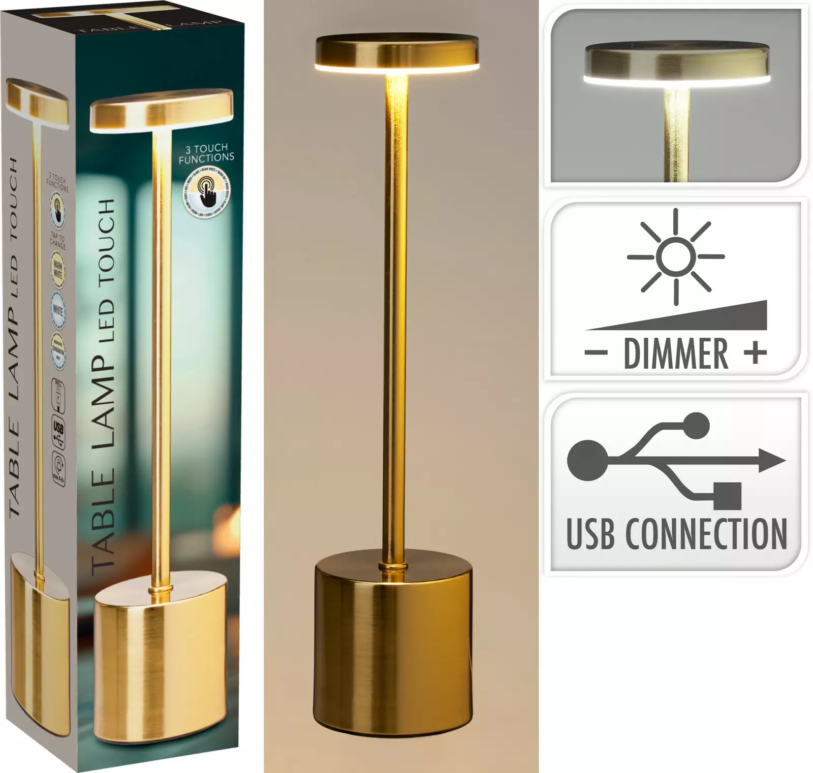 Lisää kotiisi lämpöä ja ylellisyyttä tällä kultaisella pöytävalaisimella. 8×34 cm kokoinen valaisin sopii täydellisesti yöpöydälle, työpöydälle tai sivupöydälle, ja sen elegantti kultainen pinta tuo tilaan arvokkaan ja modernin ilmeen.