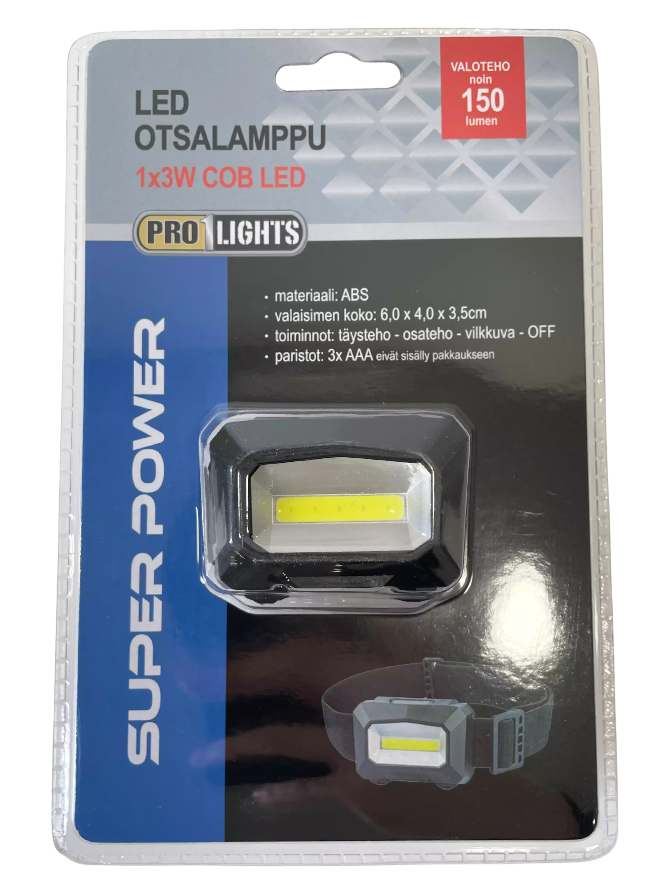 Perinteinen paristotoiminen (3xAAA) LED-Otsalamppu, valoteho 150lm. Materiaali: ABS muovia Koko: 6x4 x 3,5cm Toiminnot: Täysteho-osateho-vilkkuva-off Paristot: 3xAAA (eivät sisälly pakkaukseen)... Lue lisää