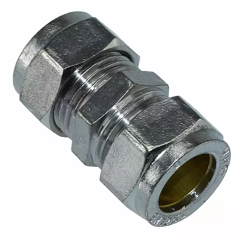 Kromattu puserrusliitin suora. Koko 15-15. STF-tyyppihyväksytty