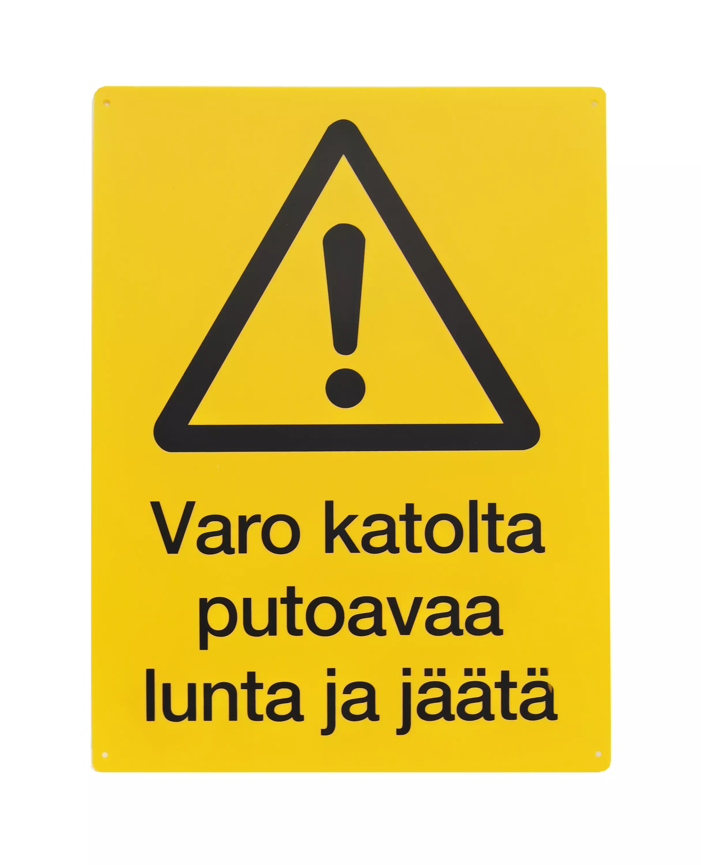 Varoitusmerkki: "Varo katolta putoavaa lunta ja jäätä". Koko: 30 x 40cm.