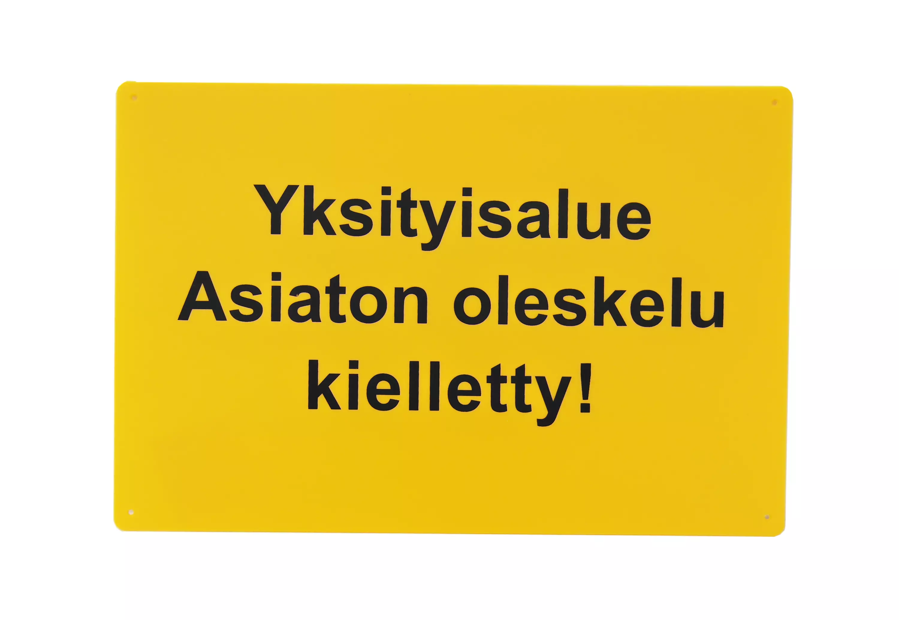 Yksityisalueesta kertova 30 x 20 cm varoitusmerkki ruuvikiinnityksellä.