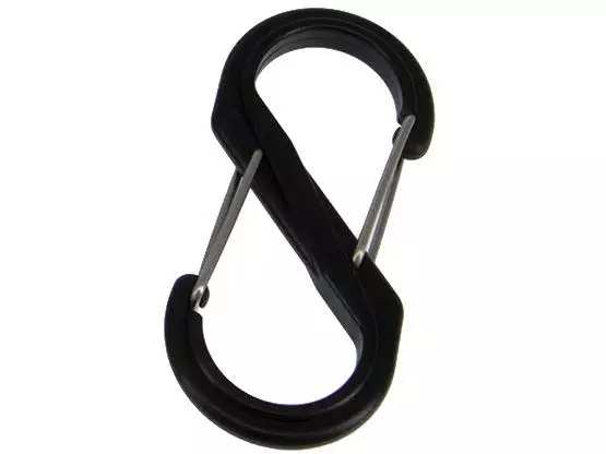 Jousiklipseillä varustettu musta s-koukku turvalliseen ripustamiseen tai kiinnittämiseen. Korkeus 85 mm, pakkauksessa on 3 koukkua.Koukku sopii monenlaiseen kiinnittämiseen ja ripustamiseen, missä ikinä tarvitsetkin turvallisen tavan kiinnittää. Kiinnitä esimerkiksi hanskat, lippis, karttakotelo tai juomapullo repun ulkopuolelle, avainnippu housun vyölenkkiin, laukun hihnaan, sopii myös pressun kulman kiinnittämiseen. S-koukku toimii myös avaimenperänä.
