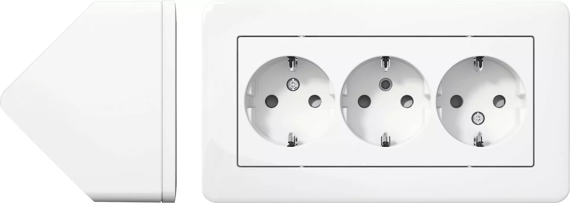 Exxact 3-osainen kolmionmuotoinen maadoitettu kulmapistorasia on hyvä ratkaisu, kun tilaa on vähän. Rasian saa siististi kulmaan vaaka- tai pystyasentoon. Tuote soveltuu esimerkiksi keittiökaappien alle. Tuotteen mitat: