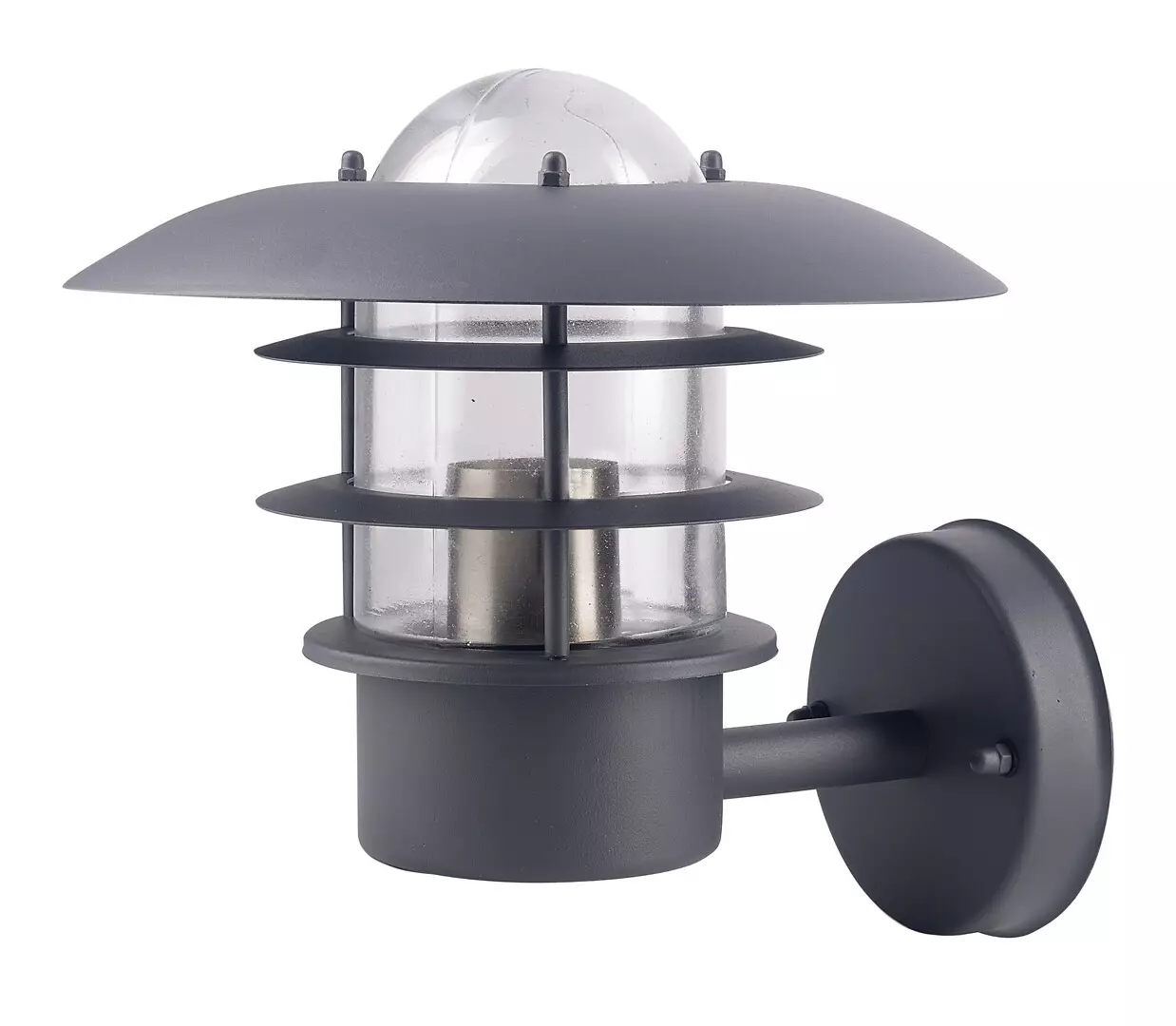 Harjun tyylikäs antrasiitinvärinen RAHOLA seinävalaisin alakiinnityksellä. Valaisimen runko on tukevaa terästä ja kupu kirkasta lasia. RAHOLA tuoteperheen valaisimet sopivat erinomaisesti suomalaiseen kotiin ja maisemaan.