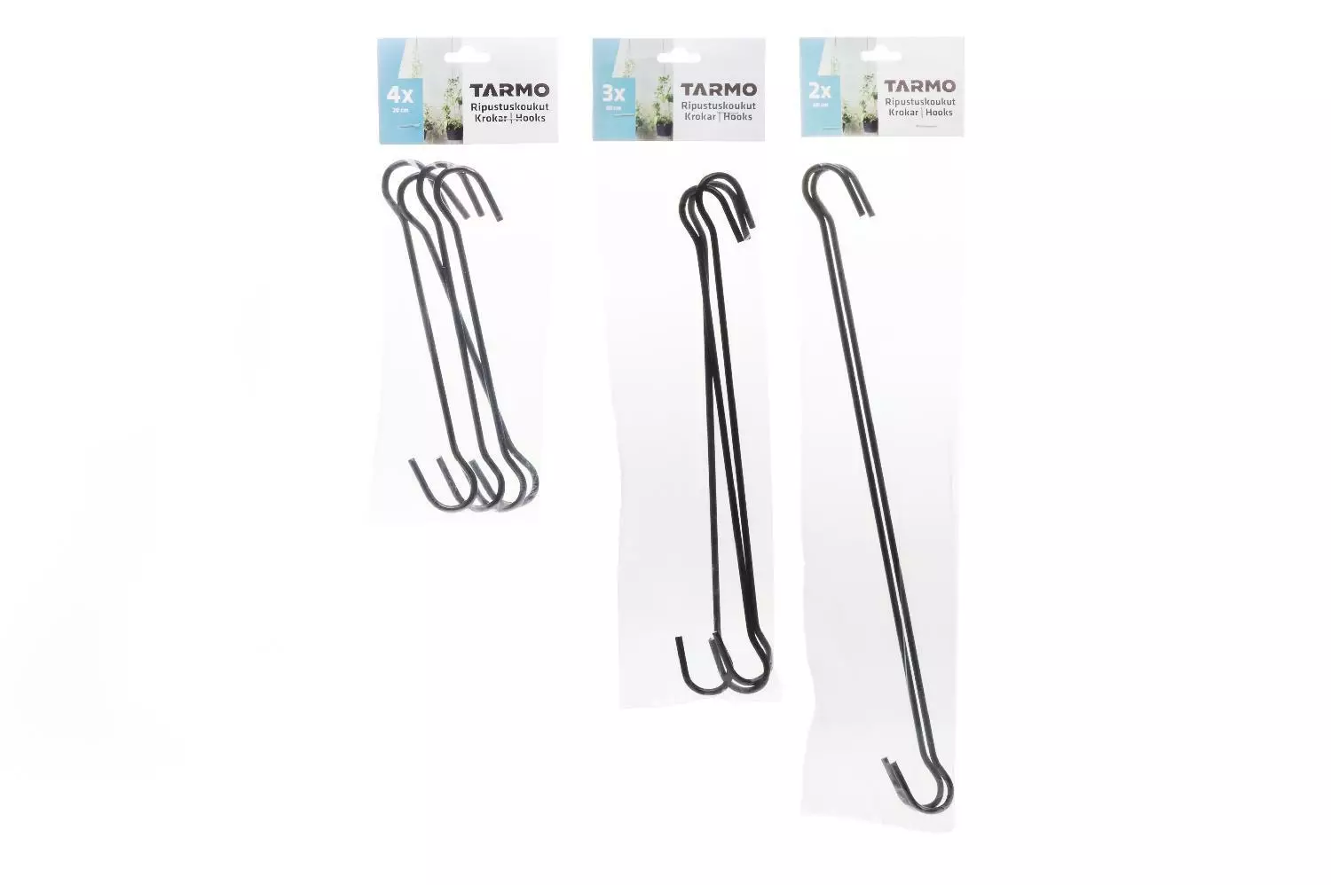 Ripustuskoukut sopivat esim. kukka-amppeleiden ja kynttilälyhtyjen ripustamiseen. Ripustuskoukut on valmistettu PVC-pinnoitetusta raudasta