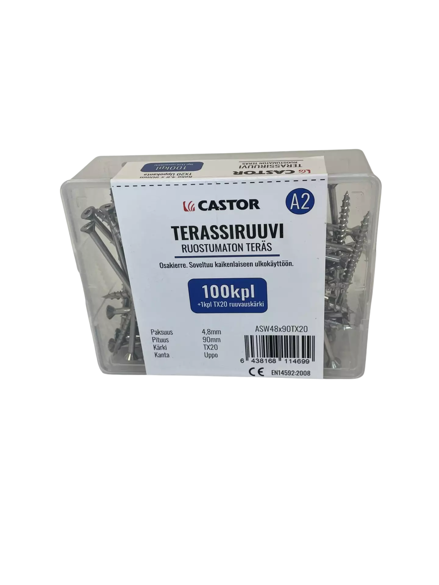 Leikkaava kärki, osakierre ja senkkaava uppokanta. A2 ruostumaton teräs. Muovibox 100 kpl + torx 20 ruuvauskärki