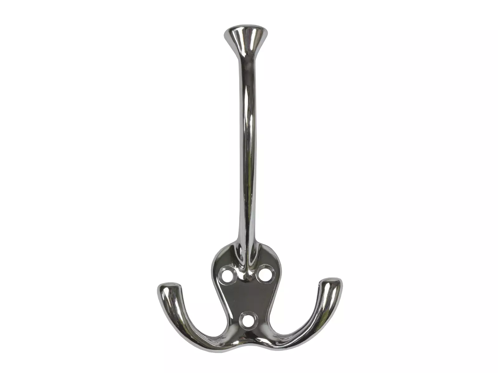 Samakista valmistettu vaatekoukku, joka on viimeistelty kromin väriin. Koukussa on yksi pidempi yläkoukku ja kaksi pienempää alakoukkua. Koukku soveltuu kodin sisätiloihin, niin eteiseen kuin vaatehuoneeseenkin.Koukun korkeus noin 110 mm. Koukku kiinnitetään kolmella ruuvilla. Ruuvien reikäväli 15 mm vaakasuunnassa ja 20 mm pystysuunnassa. Pakkaus sisältää yhden koukun ja kiinnitysruuvit.