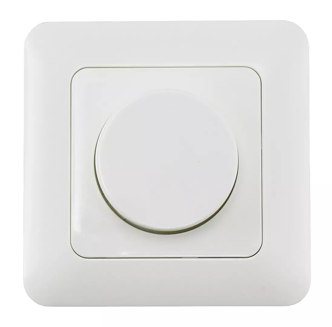 Valonsäädin, joka soveltuu himmennettäville LED-lampuille (takareunasäätö), halogeenilampuille ja hehkulampuille. Asennus ei vaadi nollajohtoa.