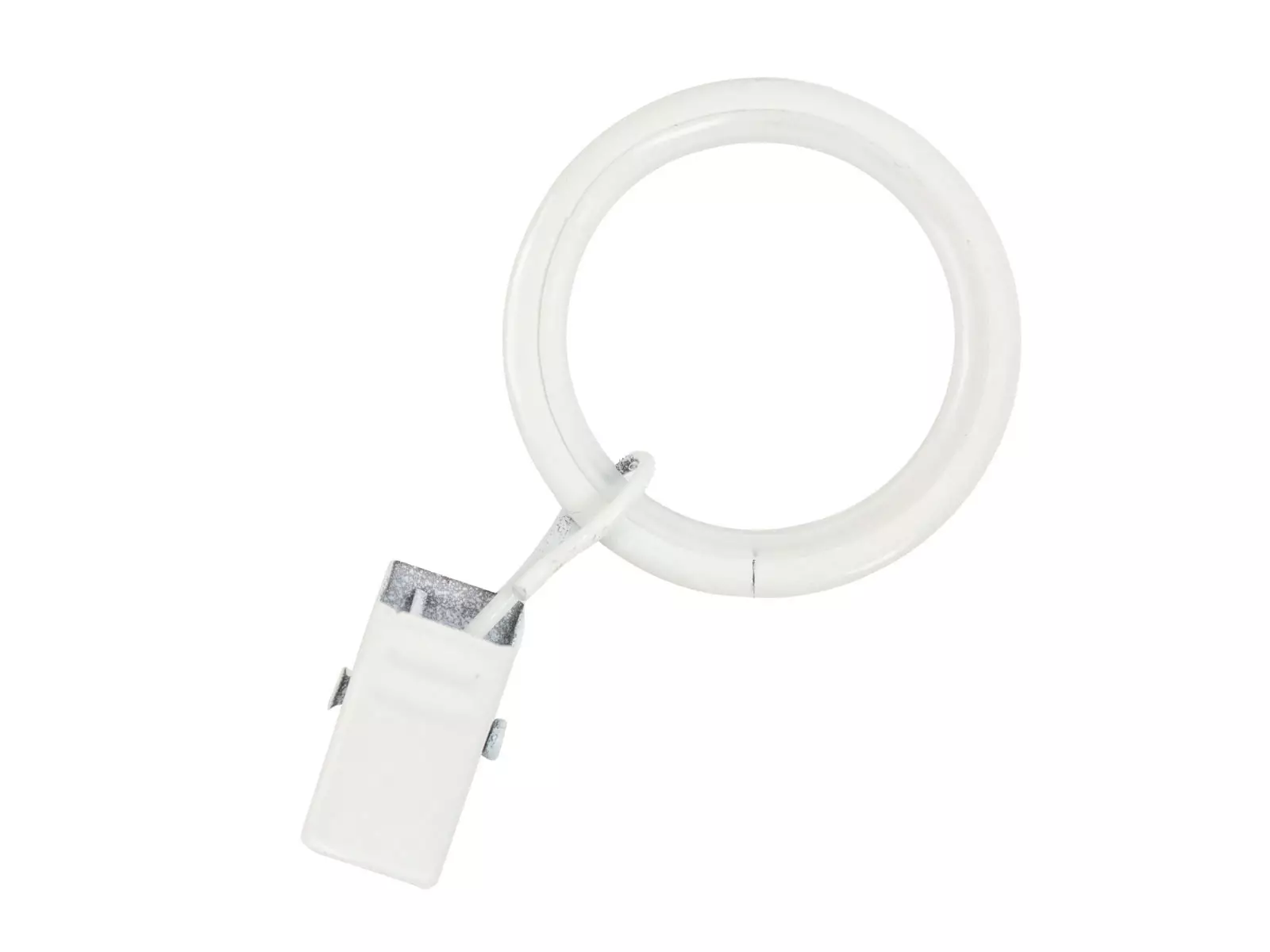 Metallinen verhorengas nipistimellä, renkaan sisähalkaisija 25 mm.