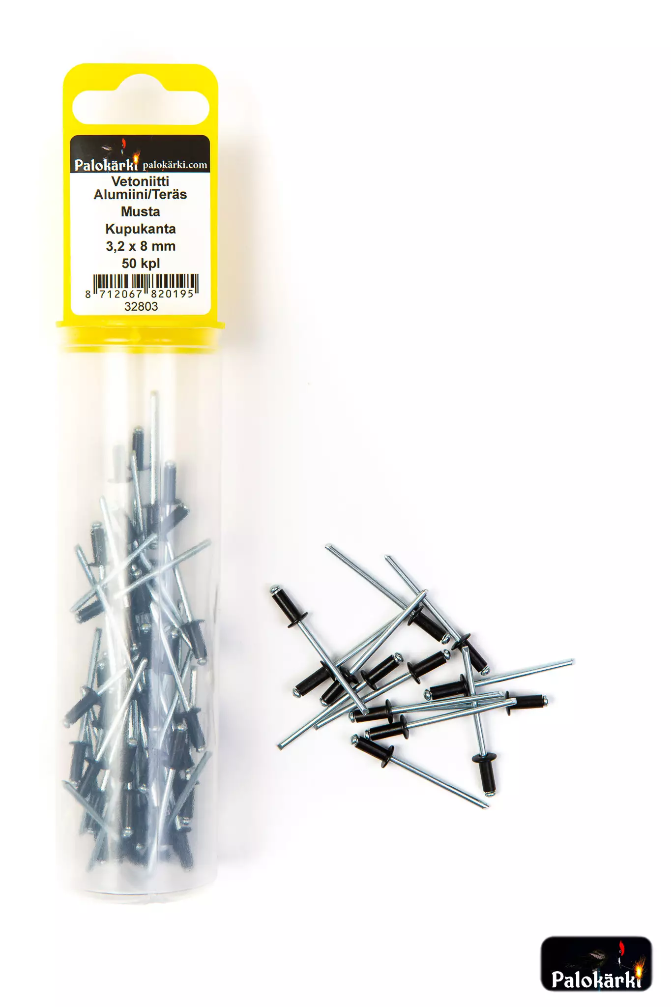 Vetoniitti alumiini/teräs musta kupukanta 3,2 x 8 mm / 50 kpl