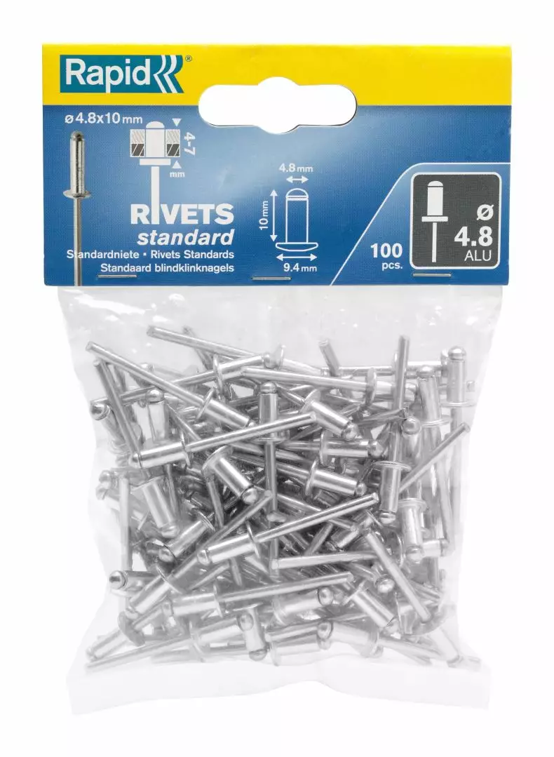 Perusvalikoima alumiinisia vetoniittejä, jotka on pakattu muovipussiin. Suositellaan käytettäväksi RP10:n kanssa.
