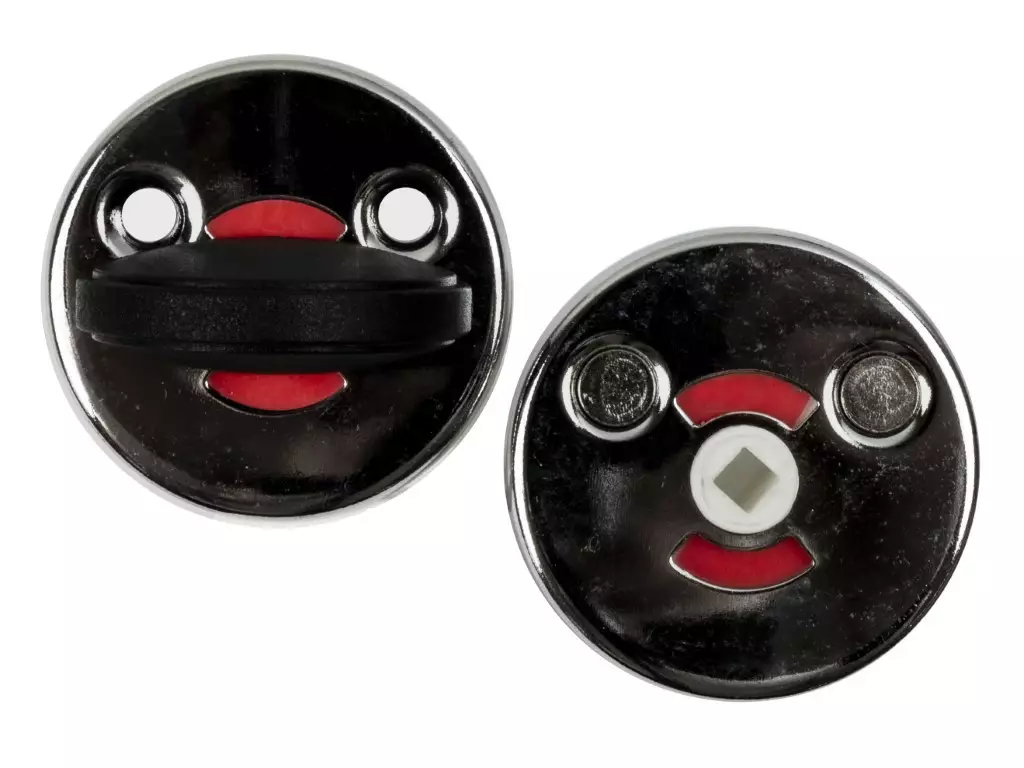 WC-oveen asennettava vääntönuppi. Materiaali teräs, viimeistely kromattu. Painike sopii 40 mm vahvuisille oville. Pakkaus sisältää kiinnitysruuvit 2 kpl.
