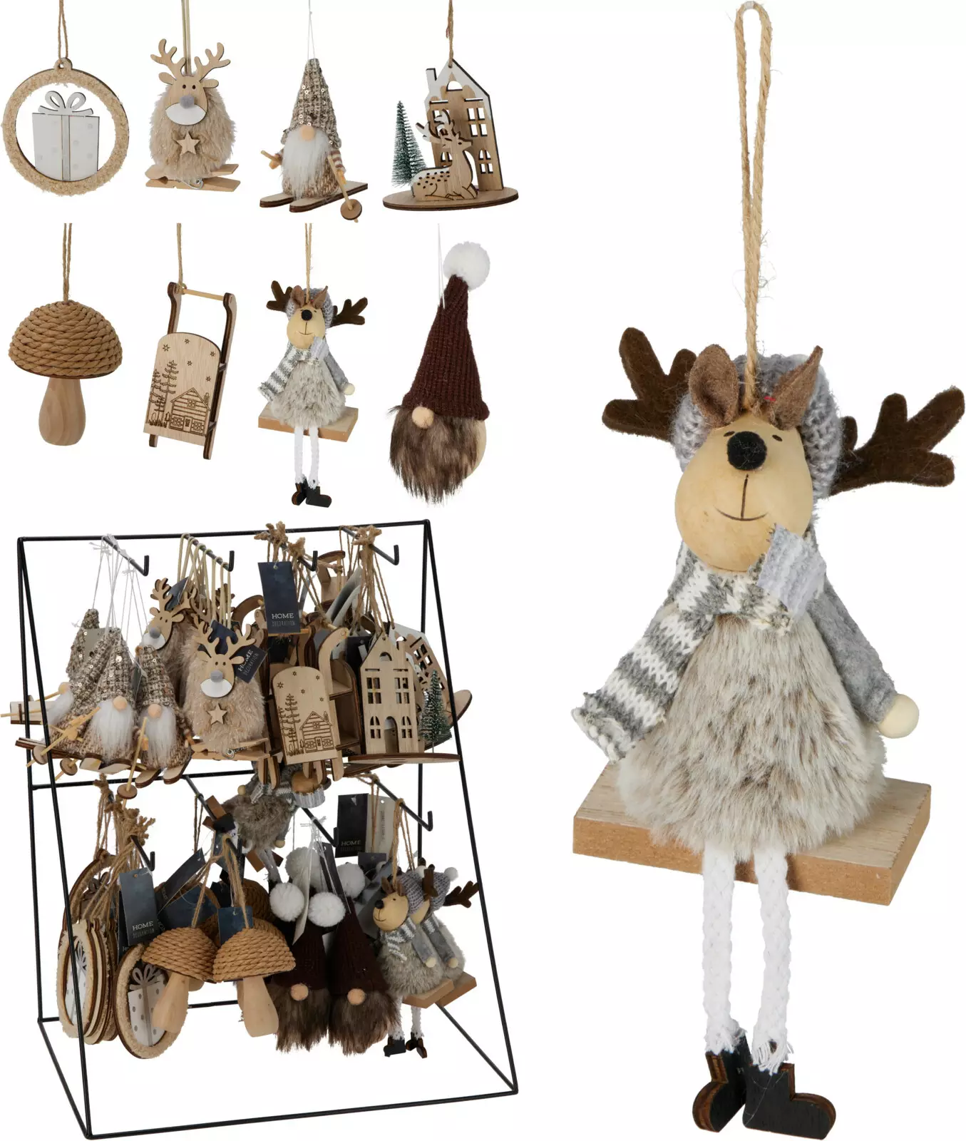 Tuo joulun taikaa kotiin tämän upean Xmas hanging decoration -setin avulla! Setissä on 8 erilaista koristeaihetta, jotka on valmistettu monenlaisista materiaaleista, kuten MDF:stä, vanerista, polyesteristä, polystyreenistä ja PET:stä. Kaikki koristeet ovat kauniisti viimeisteltyjä ja niissä on joulun tunnelmaa luovia yksityiskohtia, kuten gnomeja, poroja, joulupukin reki ja lahjapaketteja.