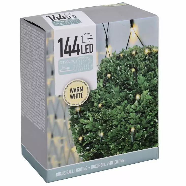 Valohuppu 144 LED -valolla luo upean tunnelman puutarhaan, terassille tai sisätiloihin. Valoverkko on suunniteltu erityisesti pyöreiden pienikokoisten pensaiden, kuten pallotuijan tai puksipuun, valaisuun. Valoverkon halkaisija on noin 120 cm.