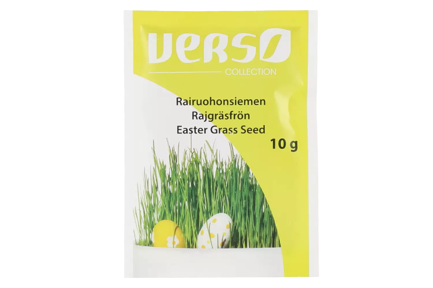 Rairuoho kuuluu pääsiäisen koristeluihin. 10 g/pussi. Pussissa kasvatusohjeet. Italian raiheinä: Lolium multiflorum.