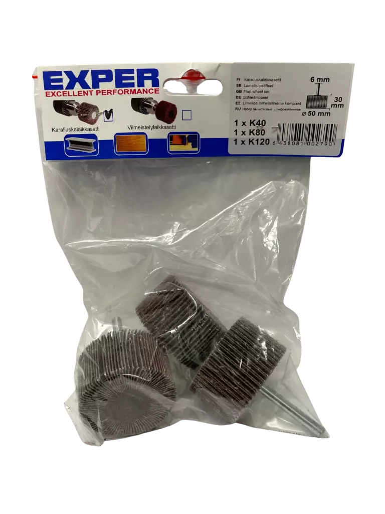 Hiomaliuskalaikkasetti porakoneeseen puun ja metallin hiontaan 3kpl, karkeudet K40-K80-K120.