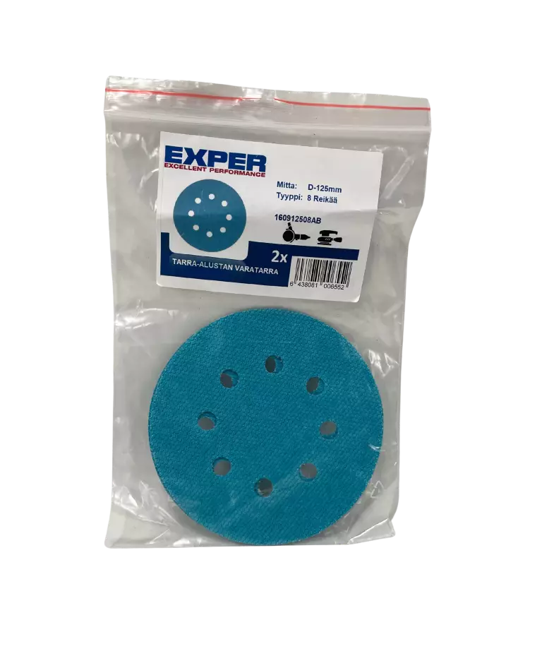 TARRA-ALUSTAN VARATARRA • tarrapinta hiomakoneen kuluneen kiinnitystarran tilalle • kiinnitys hiomakoneeseen takapuolen liimapinnalla • pölynpoistoreiät