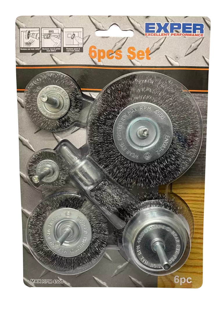 Teräsharjat ruosteenpoistoon, puhdistukseen ja maalinpoistoon. Porakoneeseen, kara Ø 6 mm. Sarja 1+1+4: 1 kpl otsakaraharja Ø 25 mm 1 kpl teräskuppiharja Ø 65 mm 1 kpl teräskuppiharja Ø 65 mm 1... Lue lisää