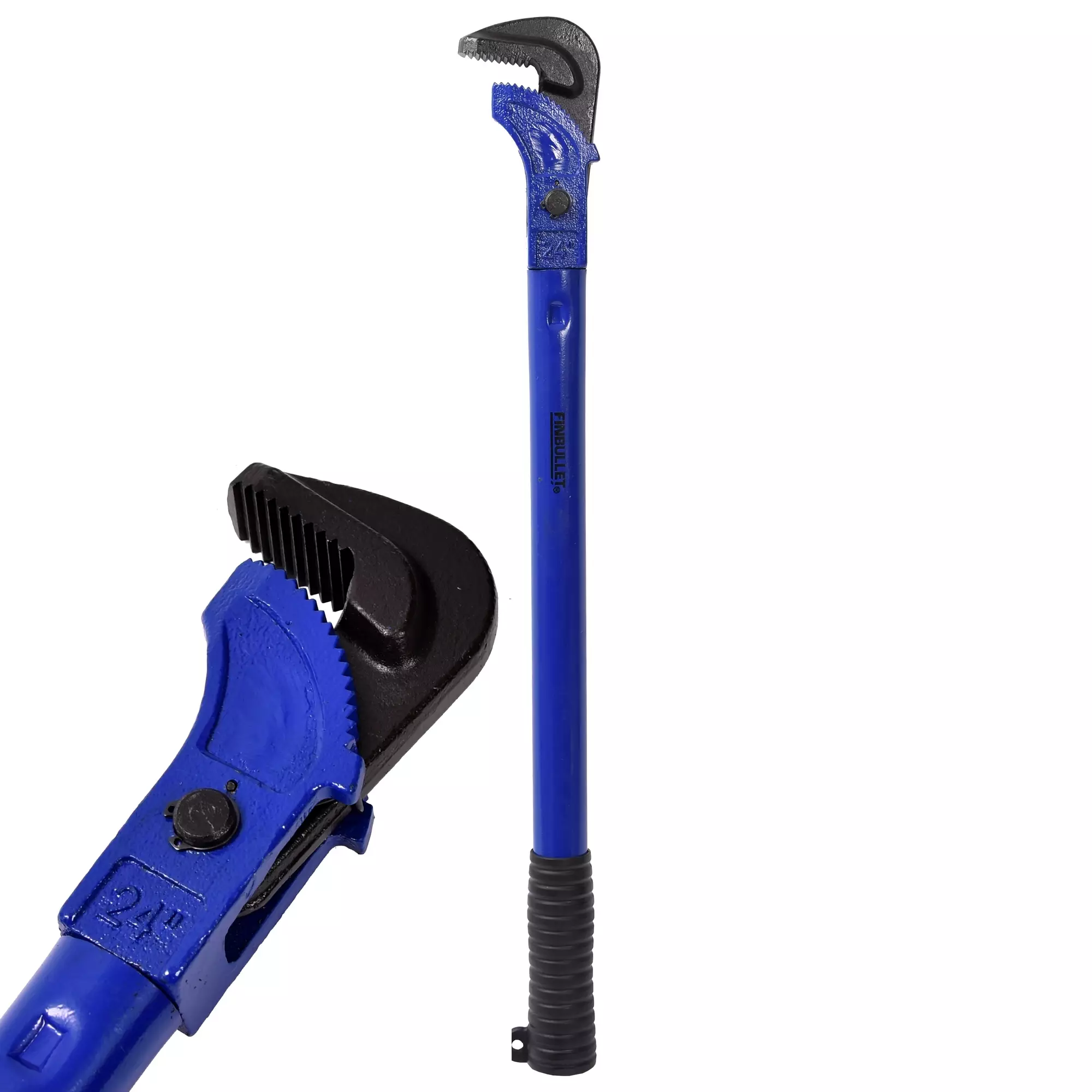 Finbullet Putkiavain 90° 600 mm Uritettu teräsleuka takaa pitävän otteen putkesta. Nopea ja tehokas. Max 50mm putkelle Pituus: 600 mm Kulma: 90° Terän kovuus: HRC53
