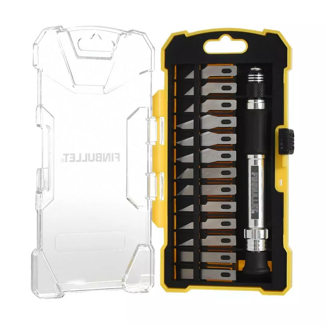 Askarteluveitsisarja Sisältää: 13 terää joissa 10 erilaista teräprofiilia 3 veistä Säilytysrasian. Soveltuu mm. askarteluun, kaiverrukseen ja koristeveistoon