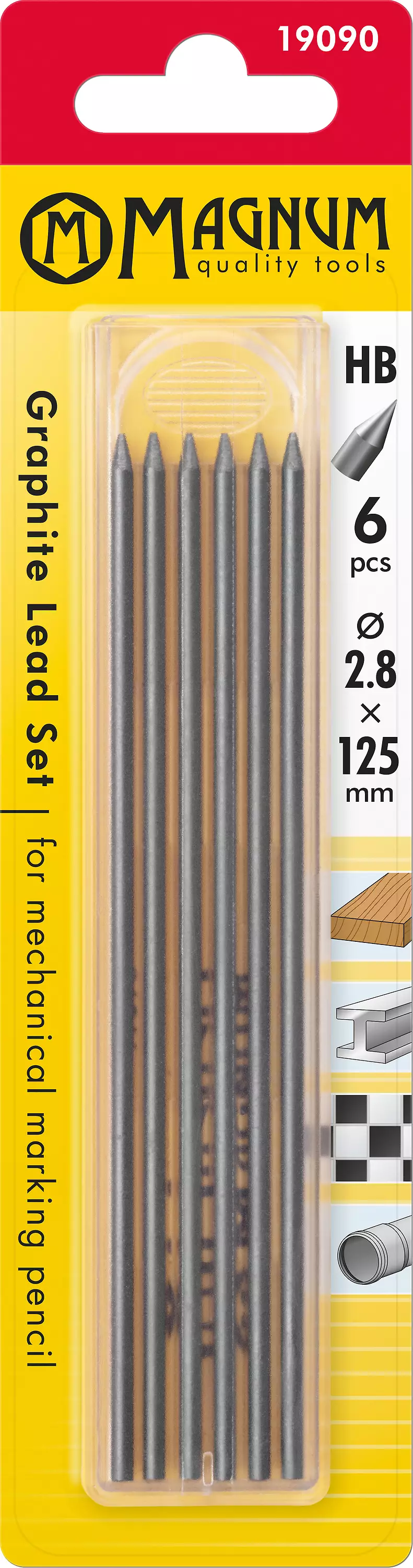 Sisältää kuusi kappaletta lyijyjä käytännöllisessä muovikotelossa.