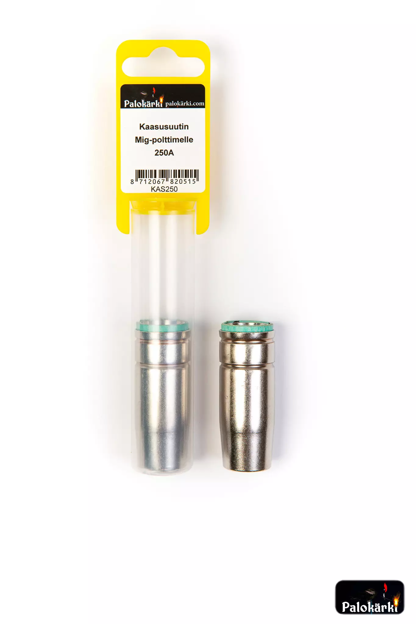 Pituus 57,5 mm, halkaisija 15,0 mm, josta suutin kiinnitetään polttimen kaulalle
