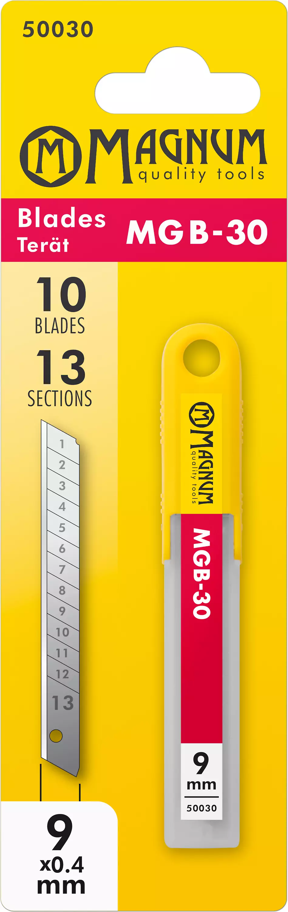 Korkealaatuisesta hiiliteräksestä valmistettu katkoterä yleiskäyttöön. 9 mm leveä terä 13 katkaisupalalla. Pakattu 10 kappaleen käytännölliseen muovikoteloon. Huippukehittynyt valmistustekniikka takaa terille tasaisen erinomaisen terävyyden.