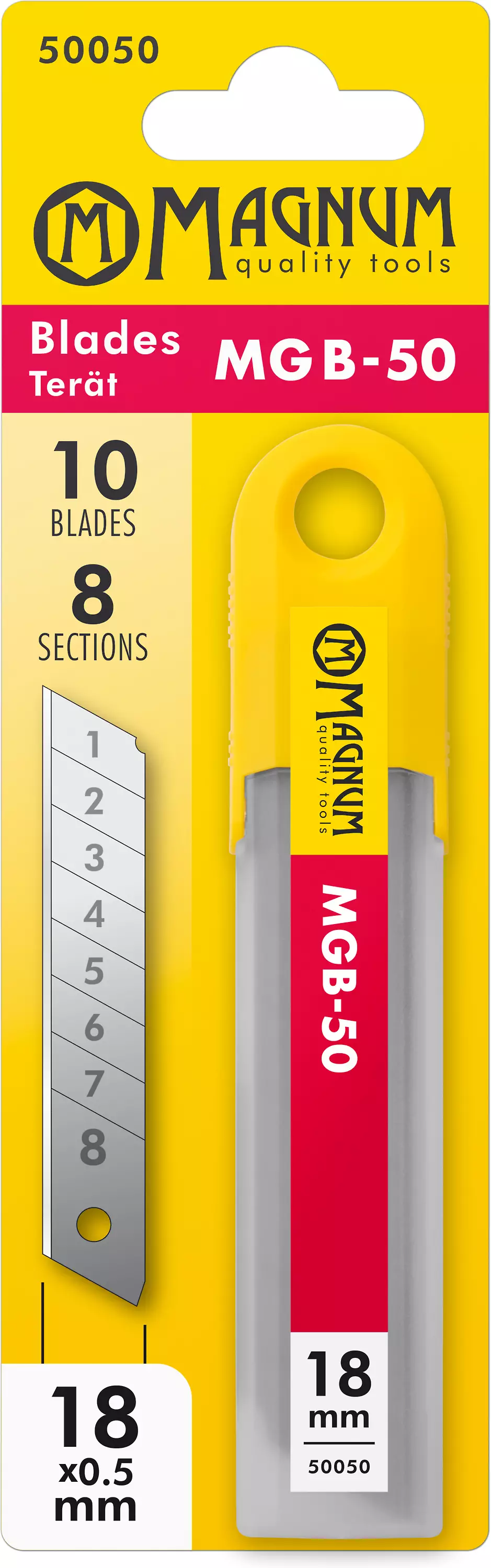 Korkealaatuisesta hiiliteräksestä valmistettu katkoterä yleiskäyttöön. 18 mm leveä terä 8 katkaisupalalla. Pakattu 10 kappaleen käytännölliseen muovikoteloon. Huippukehittynyt valmistustekniikka takaa terille tasaisen erinomaisen terävyyden.